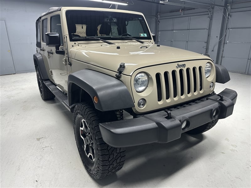 HARD TO FIND GOBI PAINT COLOR! Clean CARFAX with a warranty included and a brand new Pennsylvania Inspection Sticker and a fresh oil change! 6 speed manual transmission, power windows and locks, XM Satellite Radio, usb port, auxiliary input, bluetooth, steering controls, towing hitch, side airbags, dual front airbags, AC, alloy wheels, and 4 strong Falken tires on this very clean 2017 Jeep Wrangler Unlimited with only 60,654 miles! This Jeep has a great look to it and is a STEAL at this price! Dont miss it!